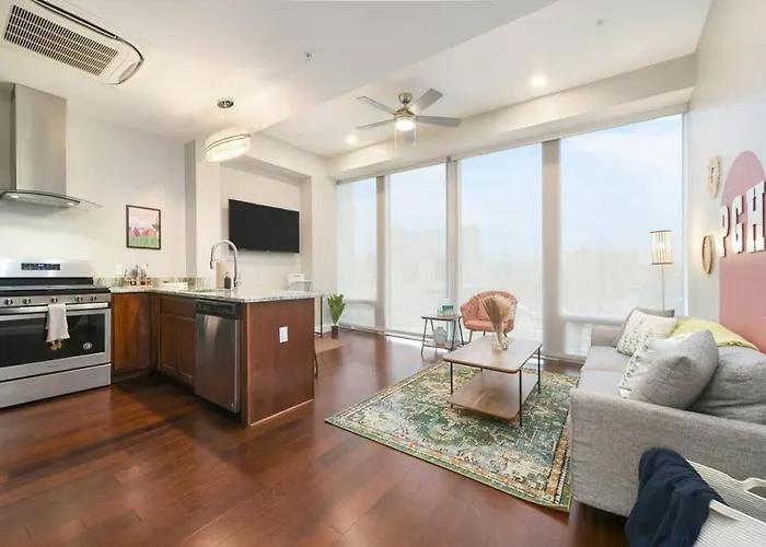 The 42 - story Late Gothic Revival Cathedral of Learning is within reach of the 65 ft² apartment, while St Benedict The Moor Catholic Church is nestled at the distance of 0.4 miles away. Guests have easy access to the multi-purpose indoor PPG Paints Arena, which is merely a 6-minute walk away. Hostwise Stays - The Washington At Chatham - Free Parking, Private Gym, Skyline Views! apartment is 1.5 miles from Children's Museum of Pittsburgh and MuseumLab.